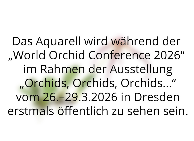 Ausstellung: Die botanische Illustration wird während der "World Orchid Conference 2026" im Rahmen der Ausstellung "Orchids, Orchids, Orchids..." vom 26. bis 29.3.2026 zu sehen sein.