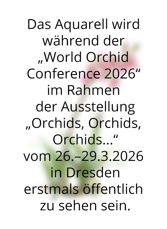 Ausstellung: Die botanische Illustration wird während der "World Orchid Conference 2026" im Rahmen der Ausstellung "Orchids, Orchids, Orchids..." vom 26. bis 29.3.2026 zu sehen sein.