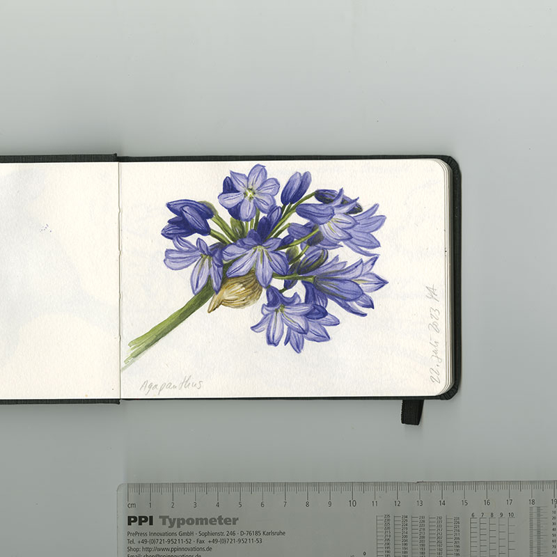 Format: DIN A6 Papier: Skizzenbuch, Aquarellpapier Farbe: Fineliner und Schmincke Horadam Aquarell Jahr: Juli 2023