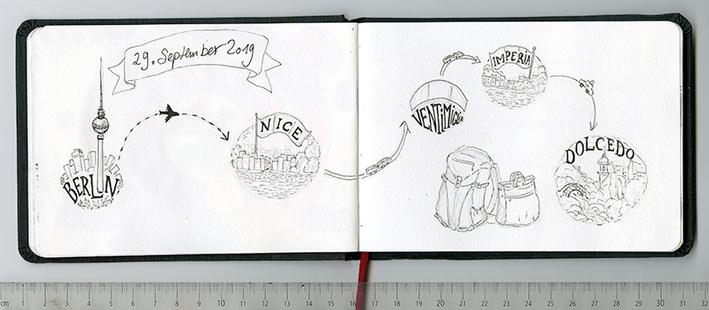 Kleines Skizzenbuch von Hahnemühle für unterwegs, im Format DIN A6. Perfekt mit Pentel Aquash Brush Pinsel.