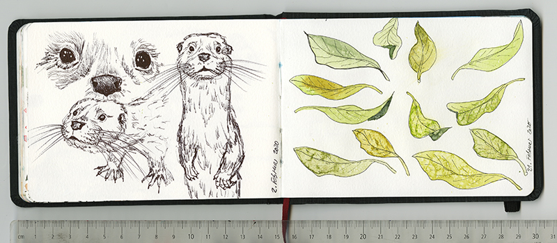 Kleines Skizzenbuch von Hahnemühle für unterwegs, im Format DIN A6. Perfekt mit Pentel Aquash Brush Pinsel.